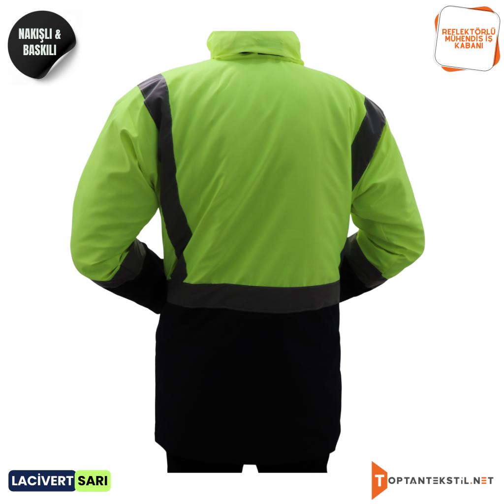 Bu kaban, sadece sizi sıcak tutmakla kalmaz; üzerindeki yüksek görünürlüklü reflektör şeritler sayesinde iş güvenliği standartlarını en üst seviyede karşılar.