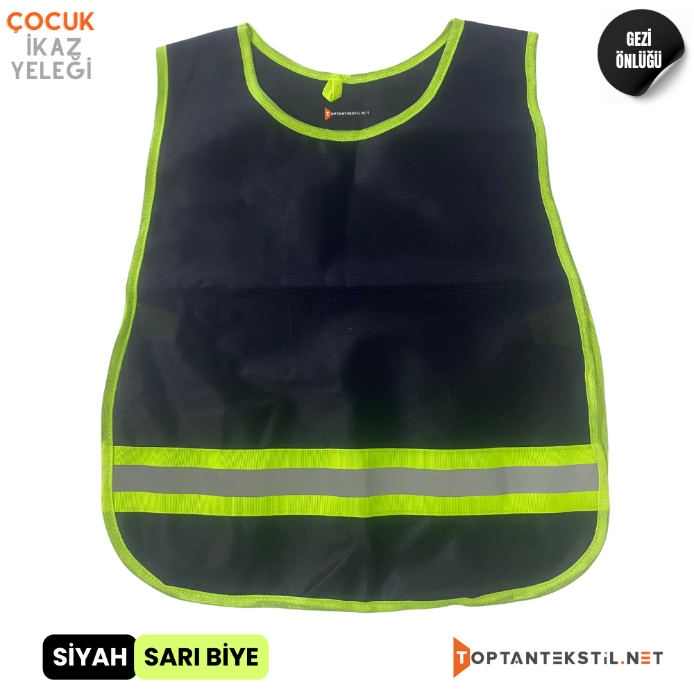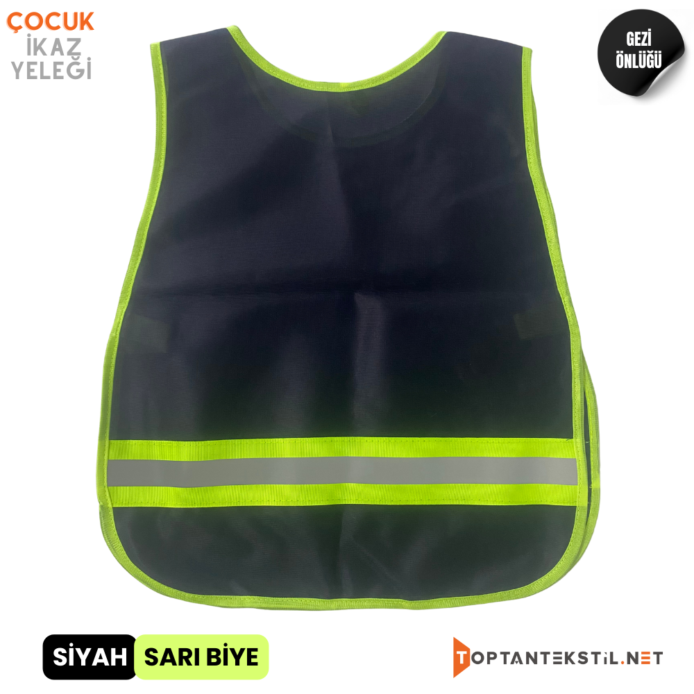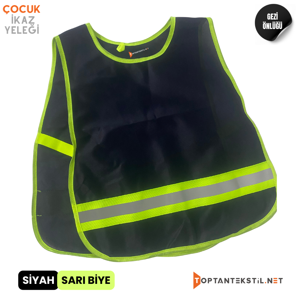 Çocuk İkaz Yeleği – Siyah (Sarı Biye) : Anaokulu Gezi Önlüğü : Çocuklarınızın Güvenliği İçin İdeal Seçim