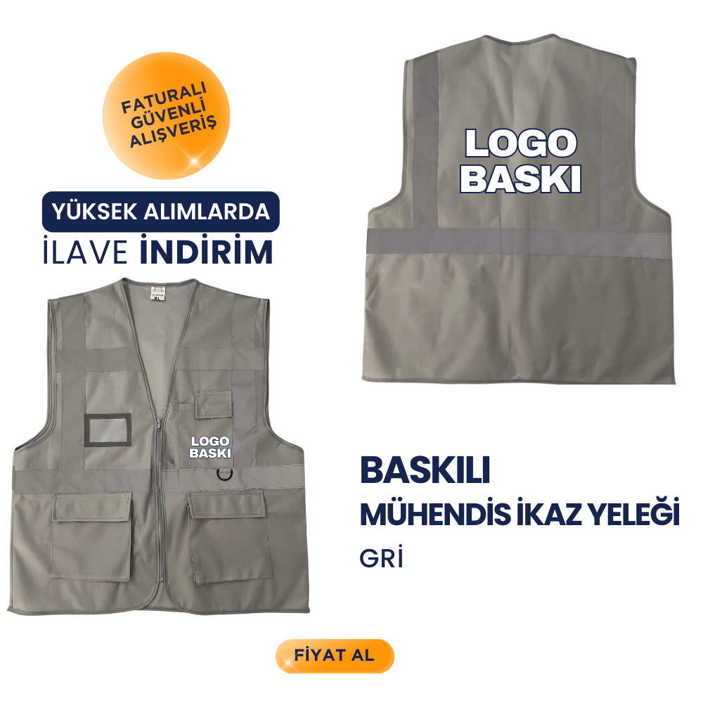 Mühendis yeleği, mühendis ikaz yeleği, reflektörlü mühendis yeleği, fosforlu yelek, iş güvenliği yeleği, reflektif yelek, firma logolu yelek, baskılı yelek yaptırarak  iş güvenliği ve kişiselleştirilmiş tasarım konseptini vurgulayabilirsiniz.