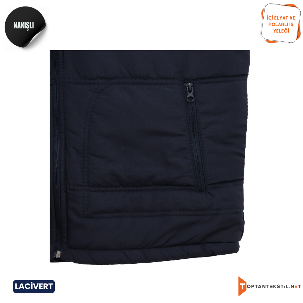 Bu yelek, atölyelerden fabrikalara, iş yerlerinden sahalara kadar geniş bir kullanım yelpazesine hitap eder. Elyaf dolgu ve içi polarlı kumaşı, rüzgar ve soğuğa karşı etkili bir koruma sağlayarak çalışanları sıcak tutar. Nakış Baskılı İş Yeleği – Lacivert